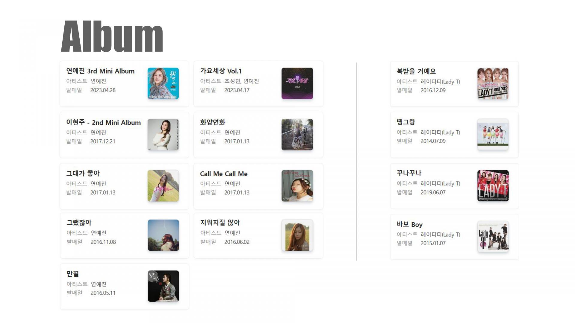 등 다양한 곡 가능